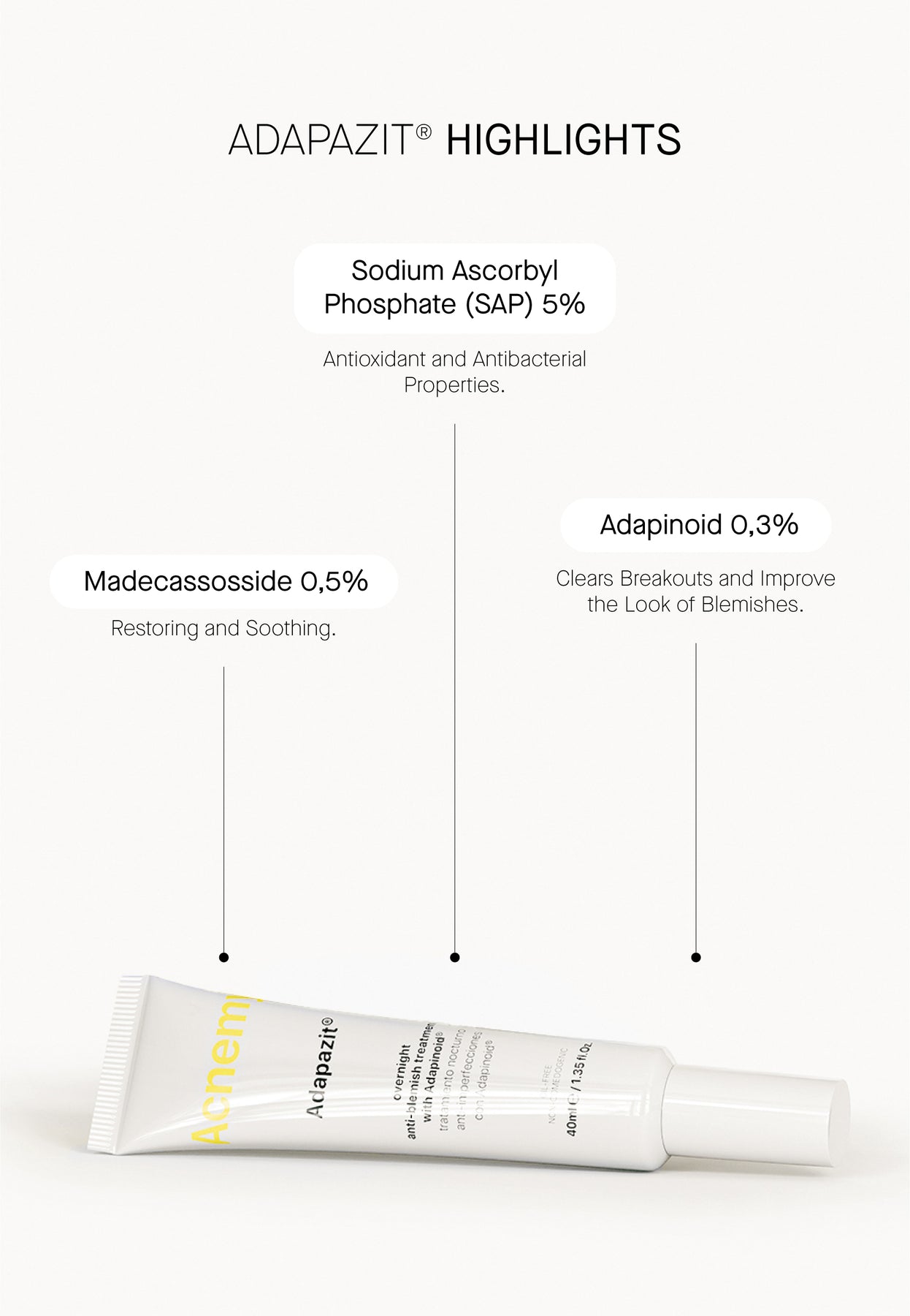 • Enthält 0,3 % Adapinoid® – ein sanftes, aber wirksames Retinoid der dritten Generation, auch für empfindliche Haut geeignet