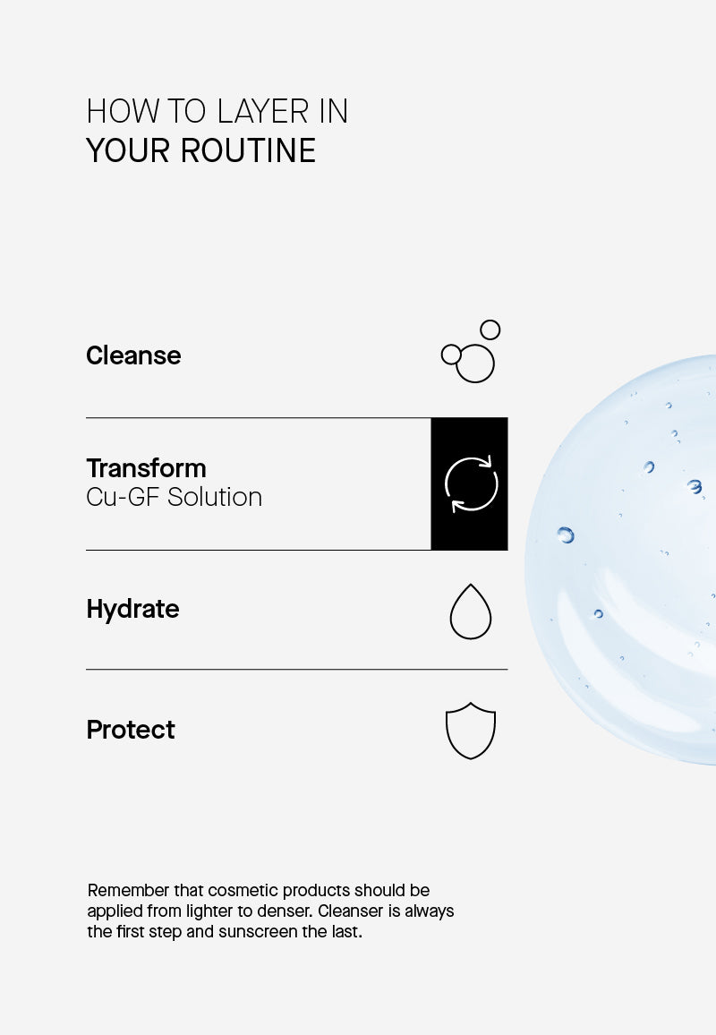 Its formula combines two key ingredients: 1% copper peptides that help stimulate collagen and elastin, repairing visible damage while protecting the skin against oxidative stress, and 5% growth factors that support skin renewal, leaving it smoother, firmer, and more youthful-looking. The combination enhances their effect, providing complete restorative anti-aging action.