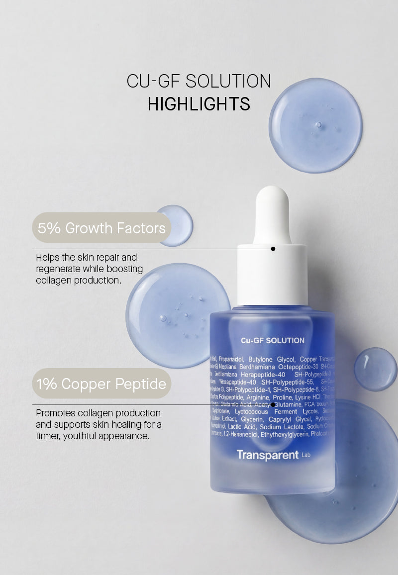 An anti-aging serum formulated with copper peptides and growth factors, designed to correct visible signs of aging and restore firmness and vitality to the skin.