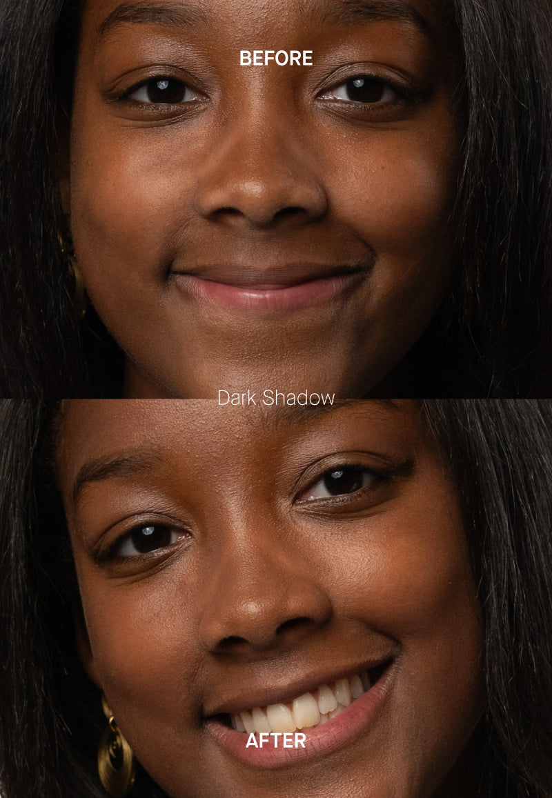 The tinted sunscreen in dark gives a dark grey undertone. I really wanted it to work out so I tried to add a bit of concealer under my eyes and powder foundation all over, but the colour is so off that it was impossible to correct, unfortunately. Removal was really difficult too, as it clings to you skin, towels, sink, and any make-up brushes that it comes into contact with, I have to triple cleanse to take it off. It was a waste of money, not recommended for dark skin tones.